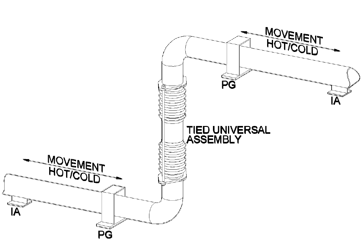 Where dimensionally feasible, the expansion joint should be designed to fill the entire offset leg so that its expansion is absorbed within the tie rods as axial movement. Keeping maximum distance between the bellows ensures low offset forces on connecting equipment.